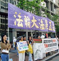 胡锦涛访美所到之处法轮功呼吁停止迫害
