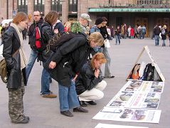 2006年4月25日下午,芬兰法轮功学员于“四二五”事件七周年之际,在首都赫尔辛基市中心举办活动,揭露中共活体摘取法轮功学员器官的暴行,紧急呼吁广大民众帮助制止这灭绝人性的罪行。