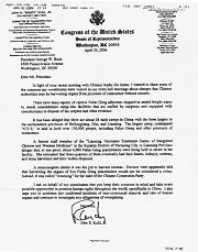 纽约州29区国会议员约翰•库尔4月26日致信布什总统,呼吁布什就在中共集中营和劳教所发生的摘取和贩卖法轮功学员器官的暴行给予谴责,并对暴行进行调查。