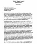 美国联邦参议员罗伯特·门尼兹和弗兰克·劳蒂伯格4月19日致信布什总统,要求布什与胡锦涛会面时提出法轮功在中国受到酷刑和虐杀的议题,并希望布什就这一重要人权虐待议题做出迅速反应。