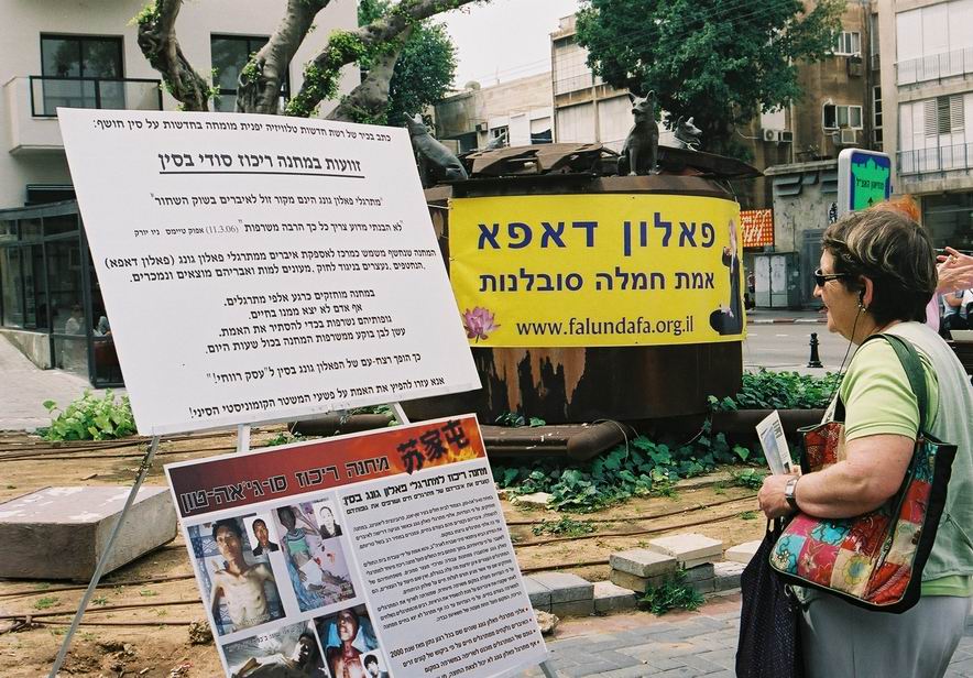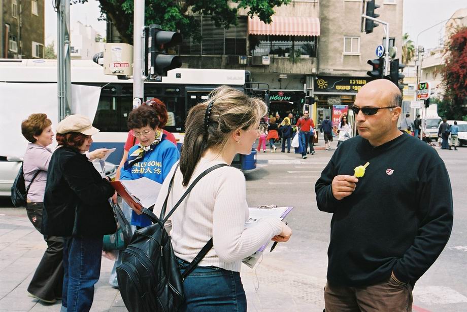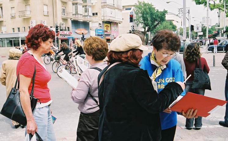 【明慧网2006年4月28日】2006年4月7日,以色列法轮功学员在特拉维夫市中心举行了集会。在集会上揭露了中共劳教所和集中营中残害法轮功学员的事实,抗议中共持续近七年对法轮功修炼者的迫害
