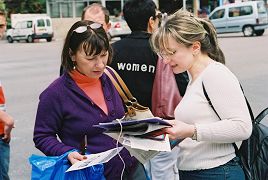 许多人对触目惊心的标语表现出极大的关注,学员们向他们解释了在哪可以查到详细的消息。有些人对法轮功修炼者遭受的残忍和非人道的迫害感到不安和同情。一名过路人说:“这是一个多元化的世界,需要所有人一起来改变它(指迫害)。”