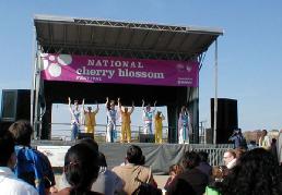 当天下午,法轮功学员表演了仙女扇子舞、腰鼓,并演示了法轮功功法,受到游客热烈欢迎。功法表演期间,有的观众跟着台上的表演比划着动作。表演结束后,身穿仙女服的法轮功学员被络绎不绝的游客邀请合影拍照,成了杰弗逊纪念堂前的一道景观。有的游客带着孩子和“仙女们”合影,并说,孩子们刚才被台上的演出深深吸引,还跟着学打坐和结印的动作呢。