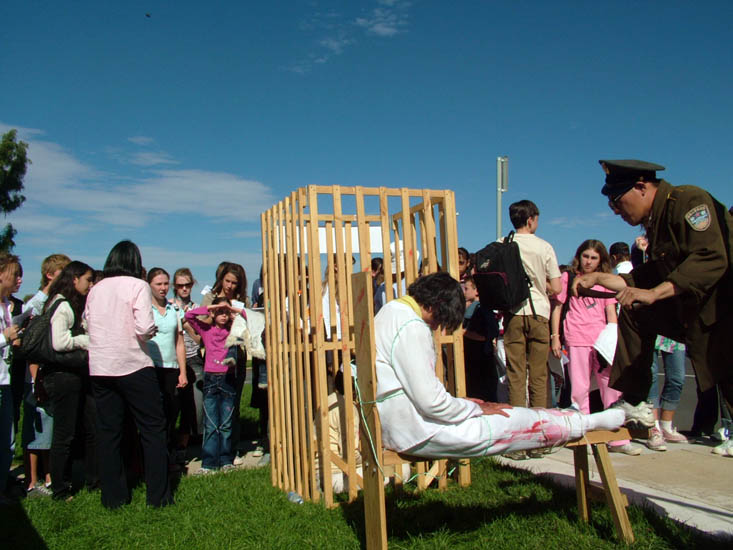 酷刑展震惊游客驻步观看了解法轮功受迫害真相