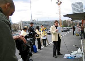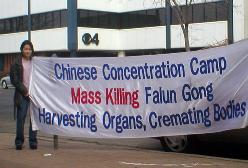 2006年3月18日,德国北部法轮功学员参加了一个在汉堡举行的声援退党活动,他们借这个机会揭露中共苏家屯集中营虐杀法轮功学员、活体盗取器官的内幕。