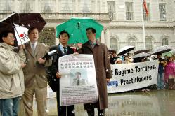 2006年4月5日上午11点,纽约地区的法轮功学员在市政厅楼前举行新闻发布会,谴责中共设立集中营关押和活体摘取法轮功学员器官的暴行,呼吁美国政府、联合国以及国际社会立即组织调查组前往中国调查集中营的真相,并呼吁制止中共对法轮功学员的迫害。
