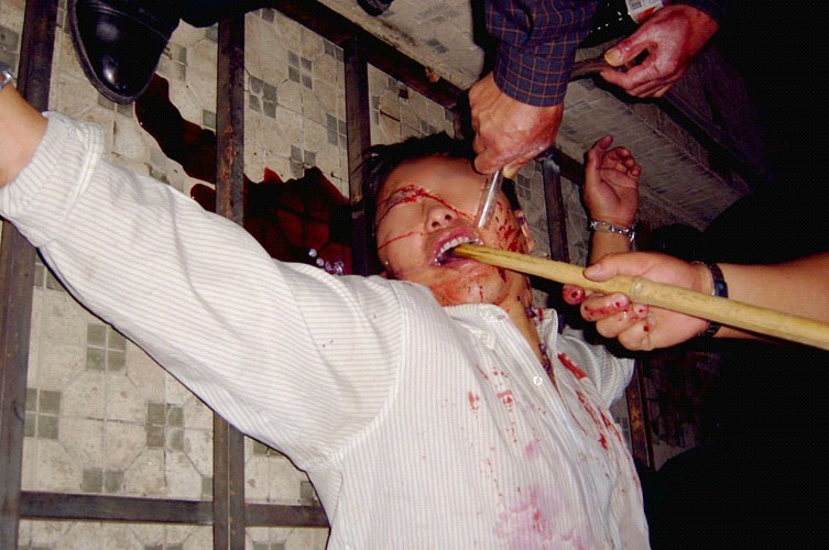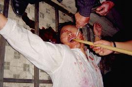 穆祥洁还讲到有一名48岁的女学员2001年9月到北京上访被警察抓捕,她不肯说自己的姓名,警察用大木板压在她的肚子上,站在上面来回踩,她的肚子一个多月后还是黑的,惨不忍睹。当时,去北京上访的法轮功学员,不报姓名的,警察就恐吓说要送到西北或者东北去,今天知道其实就是集中营。