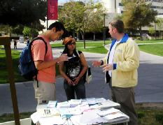 他发完言后,向手拿展板的学员走去,一一的与学员握手问候,并说:“请多保重。我支持你们!”学员都回答他说:“谢谢你的支持!”