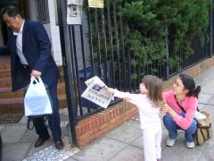 来自阿根廷各地,包括首都布宜诺斯艾利斯、土库曼、门多萨(Mendoza),科多巴(Cordorba),及著名港市罗萨里欧(Rosario)和来自美国、加拿大、澳大利亚的法轮功学员及社会各界支持人士在中使馆前举起横幅和标语,抗议中共在苏家屯活体摘取人体器官的惊天暴行,呼吁制止中共对亿万法轮功学员的迫害。