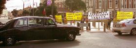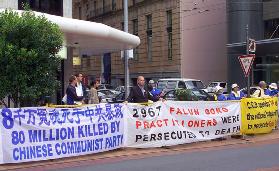 自99年7月中共开始迫害法轮功,在大陆,中共是到处追捕通缉法轮功学员,关进劳教所,抓到洗脑班,打入集中营。而在海外,中共却时时处处躲着法轮功。就连开个所谓的侨社“揭批会”,都不敢让一个法轮功学员参加。中共领导人出访,为了躲避一条法轮功的横幅,酒店正门都不敢出入。中共同西方国家的人权对话,更是关起门来,任由中共耍流氓和金钱交易,毫无改善人权的实质效果。