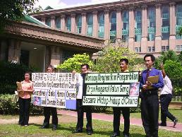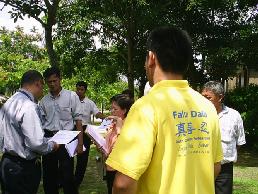 ![]() 法轮功学员在首相署外举展板,呼吁关注苏家屯事件。 |