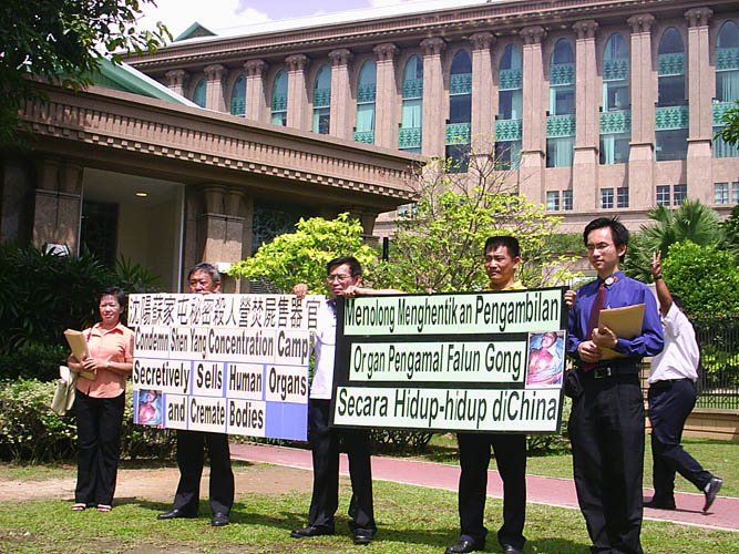为了让政府和人权组织关注中共的罪行,法轮功学员上午十时许到位于布城的首相署把有关第一批征集到的签名复本呈交给首相拿督斯里巴达威。法轮功学员在呈交文件过程中,陆陆续续引起约8位警员前来了解情况。警员们还记得法轮功学员于两个星期前,3月27日曾经到过首相署递交请愿信,呼吁马来西亚政府协助制止中共苏家屯秘密集中营活体摘取法轮功学员器官的罪行。学员借此机会進一步跟布城警员讲解中共如何残酷迫害无辜的法轮功修炼者。接着,学员也把有关征集到的签名复本呈交给位于八打灵市的马来西亚人权组织——人民之声(SUARAM),让有关组织关注这件事情。