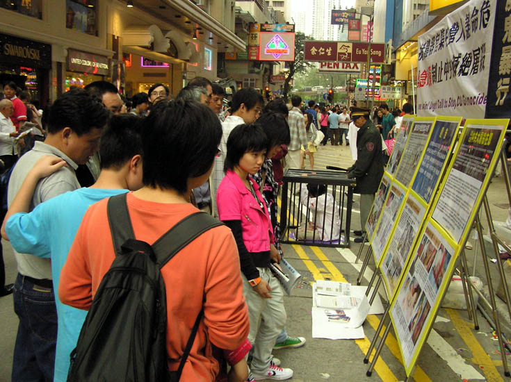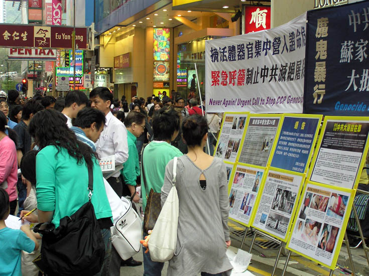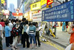 大部份路过的市民和游客都驻足细阅展板内容,部份人士并签名抗议中共暴行。