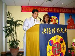 西人学员菲利希达FELISITA发言说:非常感谢师父!建立炼功点九个月以来,我感到责任很大。每个星期四到炼功点教功觉的就象种子一样,把最好的功法告诉给了人们。把“真、善、忍”告诉给人们。