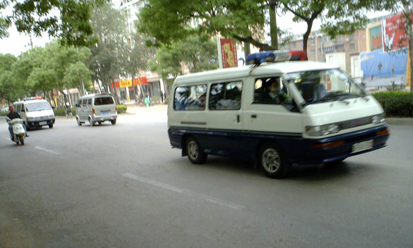 不法人员匆匆“宣判”完后,把四名大法弟子带回看守所。这是车队中的两辆车。