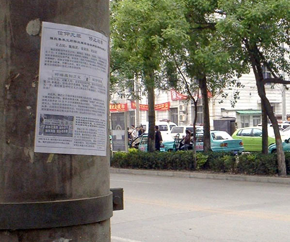 在保定市新市区法院对面电线杆上贴着的传单。