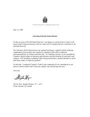 体现我们文化传统的宽容,以及我们人民长久不懈的努力,为我们带来了高质量的生活,丰富多元的文化为全世界所赞美。作为加拿大公民,我们为在加拿大共享开明和宽容的价值观及信仰和宗教自由而感快慰。包括法轮功修炼者在内的所有加拿大人均应谨记,永远不要将这些权利价值视为当然而轻视之。