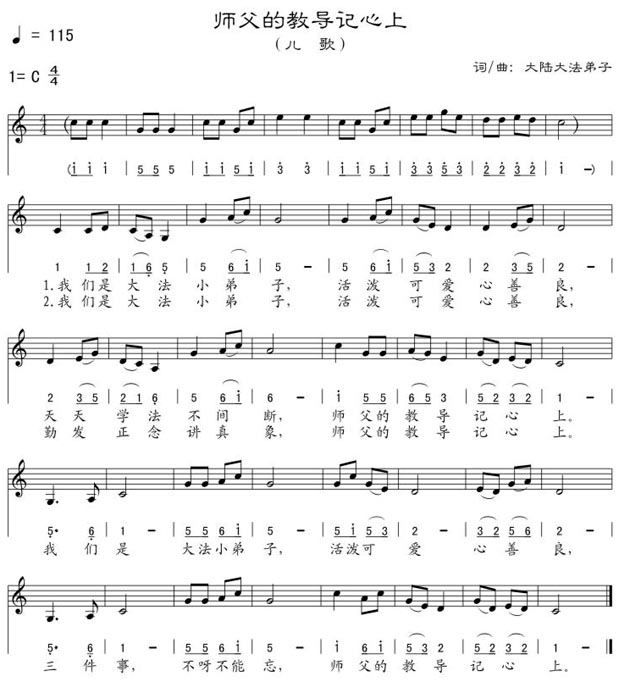 歌谱:师父的教导记心上(儿歌)