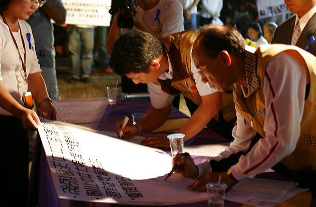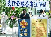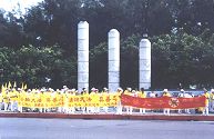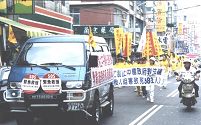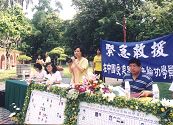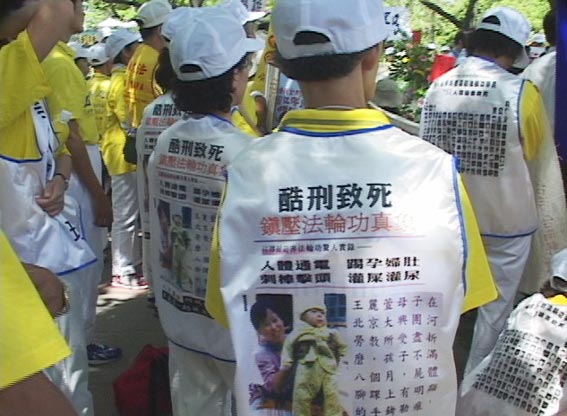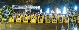 ![]() 2002年高雄文化中心千人烛光悼念 | ![]() 2003年南台湾声援全球公审江泽民 | ![]() 将迫害真相穿在身上 |