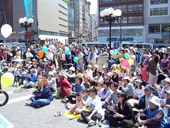 ![]() 市民们兴致勃勃的和大法弟子们一起庆祝第7届世界法轮大法日 |