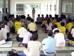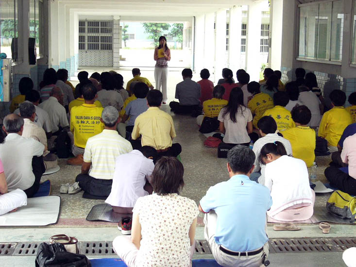 一位学员说出自己的修炼体悟:“修炼就好象站在一个圆圈里面,360度每一个角度都要修好,修圆了;在与他人接触时,我们说出的每一句话,才能让民众感动。”他也语重心长的说:“不要忘了叫醒身边落下了的学员。”