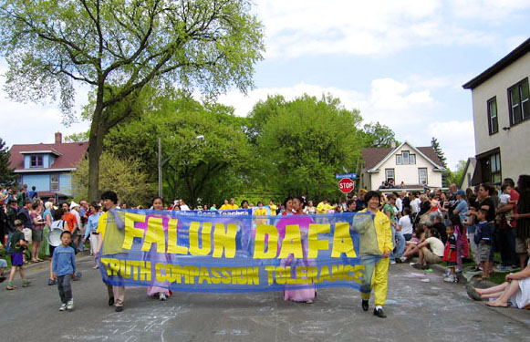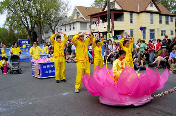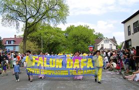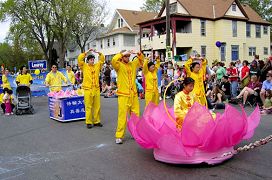 ![]() 法轮功学员的队伍引人注目 | ![]() 法轮功学员的队伍引人注目 |