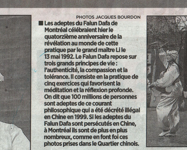 • 加蒙特利尔法文报报道法轮大法日庆祝活动(图)