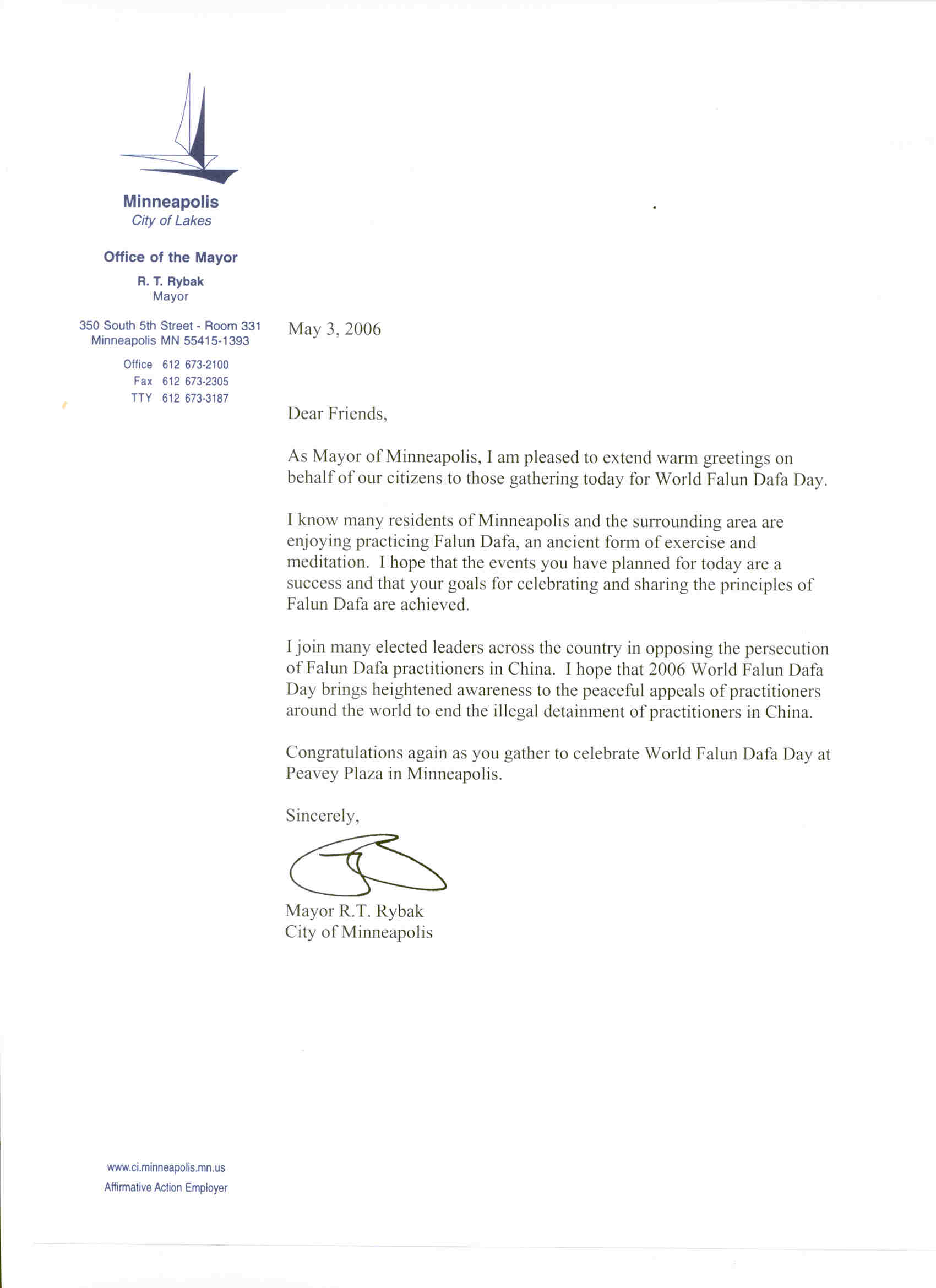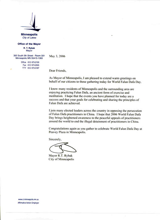 • 美国明尼阿波利斯市长贺世界法轮大法日