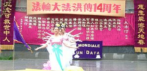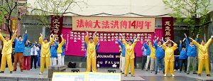 • 法轮功学员加拿大国会前庆祝法轮大法洪传十四周年(图)