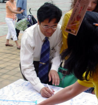 • 法轮大法日 加国学员藉图片展传真相(图)