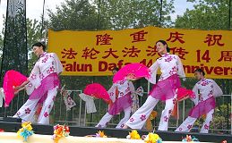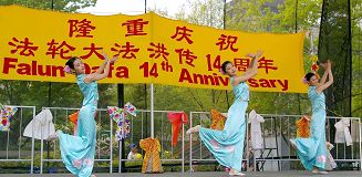 【明慧网2006年5月15日】(明慧记者叶灵辉报道)5月13日是世界法轮大法日。加拿大多伦多的法轮功学员与他们的朋友们一起,在市政厅前的尼顿•菲利普广场欢庆节日,庆祝大法洪传世界十四周年,并庆祝师父五十五华诞。