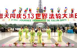 Alexis首先向观众们介绍了5月13日是一个特殊而伟大的日子,法轮功创始人李洪志先生从1992年传法至今,已走过了14个年头,如今法轮大法洪传世界80多个国家,不同国家、民族与种族的修炼者共同沐浴着法轮佛法带来的无限美好,普天同庆法轮大法日。Alexis并代表法国大法弟子祝师尊生日快乐。