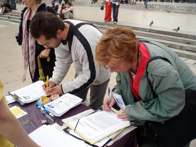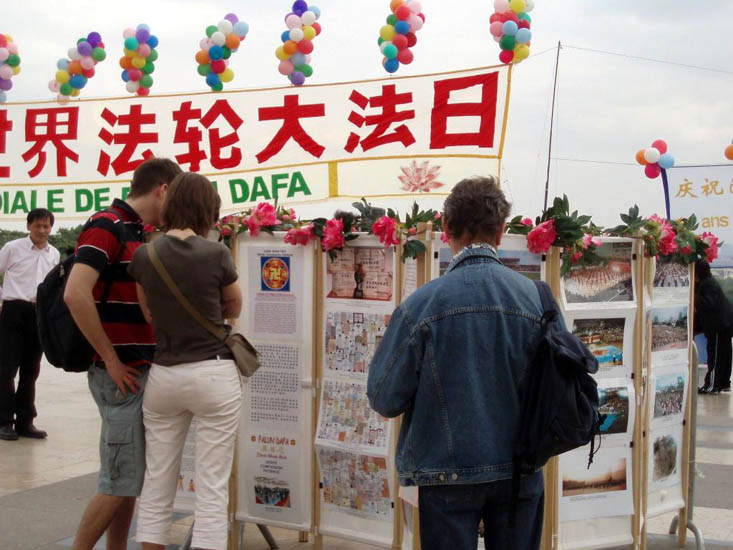 ![]() 游人观看展板 | ![]() 签名声援制止迫害 |