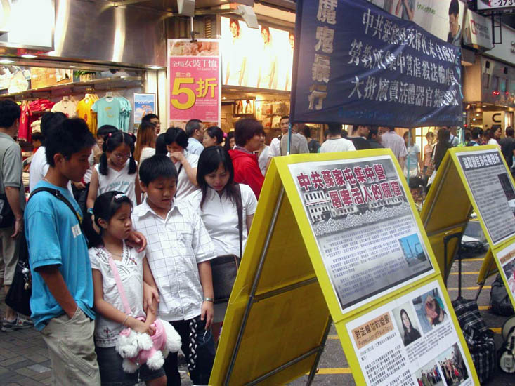 在隆重庆祝节日的同时,学员们不忘向民众讲真相,揭露发生在大陆的迫害,当天及翌日下午,分别在全香港最繁忙的两个地区──旺角和铜锣湾的街头举办反酷刑展,揭露中共活摘器官牟利的暴行及其它迫害真相。