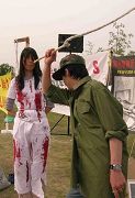 虽然在总理府前的行人没有闹市区的行人多,但还是不断有人被真人模拟揭露出来的迫害震惊,他们停下脚步,希望知道更多的情况。