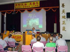 1997年11月,李洪志老师来台湾在三兴国小讲法,台东学员特别北上参加。朱女士叙述当时的情景:“当时我身体内法轮运转的感受很强烈,很想问老师,讲法中间休息10分钟时,我正低头拿皮包,一站起来老师竟然笑容满面的就站在我面前,亲切和蔼的问我:“我讲的话你听的懂吗?”我回答听的懂,老师又面带微笑再问一次:“我是大陆来的,讲的话听的懂吗?”我说听的懂后就楞在那儿,此时旁边的学员一直提醒要我合十;老师走到别处时,我才突然想起我忘了问老师问题。后来其他学员说老师一定知道你有问题,所以下讲台后直接走过来问你。”这个问题后来在书中找到了答案,当时既高兴又幸福的深刻感受,也永远深印在朱女士的心中。