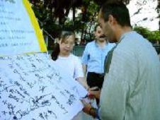 ![]() 2003年反香港23条立法征签活动 | ![]() 2004年反酷刑展围观者众 |