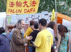 在集会上,法轮功学员们也遇到了不少中国人,他们大都高兴的接受了真相小册子及真相光盘,其中有位带着小孙子的老人对学员说:“共产党说法轮功不好,是什么什么教,但我不信共产党那一套,我要自己去了解法轮功到底是什么,为什么那么多人在炼。”老人表示希望能看到《转法轮》,学员答应第二天一定给他带来。