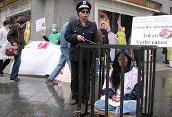 ![]() 法轮功学员在人民公园正门前炼功,同时揭露中共摘取器官兽行。 |