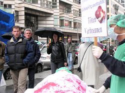 最近一次在布尔诺的历史中心举行的抗议活动是两周以前。活动的地点仍然和以前一样,那天的天气很好,气候温暖,人们都主动来了解迫害和器官摘除的情况。经常可以看到人们前来索取资料,边走边仔细的阅读,但在走了几步之后,他们停住了,转身直奔签名桌。