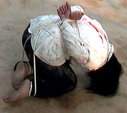 2000年6月中旬,当时天气预报38度,地表温度达40多度。在正午12点多,值班犯人将我拽到阳光下面暴晒,我当时身体非常虚弱,已绝食数日,值班犯人在阴凉处,四周洒着水,直喊热,并喊自己大腿根腌了。直到下午3点多,我不但不觉得热还觉得浑身发凉,险些昏过去。她们一看不好,才赶紧拉我回屋。