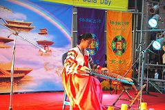 下午两点多,游行队伍浩浩荡荡的出发了,五彩缤纷的法轮旗,韩国的腰鼓,美丽的唐装,与之形成鲜明对比的还有揭露中共活体摘取法轮功学员器官的演示车,法轮功学员手捧着的受残酷迫害致死的大陆同修的遗照……人们或驻足观看、或回头目送、或掏出随身的手机拍照、或仔细阅读真相资料。明慧学校的小弟子们也忙着把写着“法轮大法好”的气球送到索要气球的小朋友们手中。