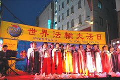 【明慧网2006年5月26日】2006年5月21日,韩国大邱和庆尚道地区的法轮功学员聚在大邱,用游行和文艺表演庆祝殊胜的节日--世界法轮大法日暨大法洪传14周年。