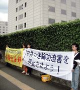 法轮功学员散发的日本法轮大法学会致日本国会议员的请愿信中说,我们要求禁止以酷刑罪和群体灭绝罪而受到国际社会起诉的中国商务部长薄熙来进入日本。