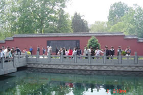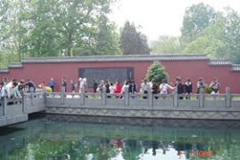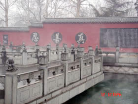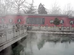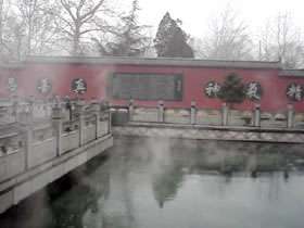 百脉泉公园位于山东济南市章丘明水境内,以泉水自然喷涌成湖而著称,其中以百脉泉、梅花泉、墨泉、龙泉最独具特色,享有“天下奇观”的美誉。龙泉寺为济南地区著名佛寺,始建于明景泰元年(1450年),坐落在百脉泉公园内,1996年修复时,在寺内西墙上1米左右的圆圈中雕刻了“精,气,神,真,善,忍”六个大字,更是吸引着海内外,省内外的大量游客,带动了济南章丘旅游业、经济产业的兴旺与发展。