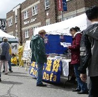 卡尔加里法轮功学员连续第三年申请了展位。根植于中国传统文化,发源于中国大陆的法轮功,在本土遭受中共史无前例的迫害,在远隔重洋的加拿大却蓬勃的发展起来。功法展示吸引了大量观众,不时有人询问哪里可以学功,并主动签名呼吁加政府谴责中共暴行,亦有很多人欣喜异常的接过悬挂着洪法书签的小莲花,包括多位大陆人士。还有一位女士告诉学员,这儿的能量场非常强,她感受很深。
