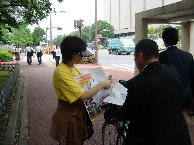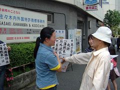 ![]() 虎之门车站,日本民众了解薄熙来罪状 | ![]() 外务省前,法轮功学员揭露薄熙来罪状 |
