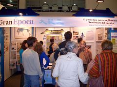 可是两年前由于中共大使馆企图赶走第一次参加书展的法轮功学员,并且威胁大会如不撤销法轮功摊位,它就退出。因为此无理的要求没有被大会接受,中共大使馆只有取消安排的文化研讨会,并且退出了大会。一个大会人员向大纪元透露,两年来中使馆每年施加压力,要大会禁止法轮功参展,并且说有法轮功,中国使馆就不参加。大会只有说,那中共使馆就不要参加好了,因为这是阿根廷,任何参加的摊位只要没有暴力的行动,是有言论自由的,而且大会的宗旨是拥护人权的。该大会人员继续祝贺大纪元的工作人员,说大纪元报纸做的太好了。