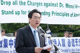 关注王文怡博士的一些素不相识的华盛顿居民、从纽约赶来的自由民主运动人士,华盛顿特区参议员候选人、华府非政府组织代表、华府地区的大学社团主席、曾在中国大陆遭受迫害的法轮功学员代表等在集会上发言。王文怡女士也来到集会现场感谢所有关注她和在中国大陆遭受迫害的法轮功学员的善良民众。