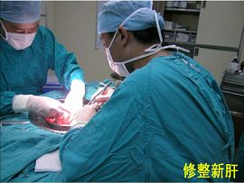 ![]() 中山大学肝脏移植中心的医生正在处理被摘取下来的肝脏 |
